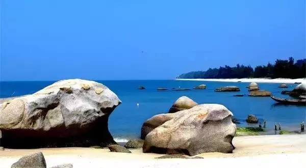海岸线迂回曲折,海底平坦坚实,海沙洁白晶莹,海水清澈蔚蓝,海礁千姿百态,与岸上的山石奇景交相辉映,一幅亚热带海滨沙滩的绚丽风光。