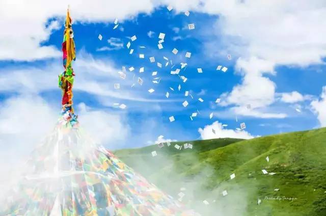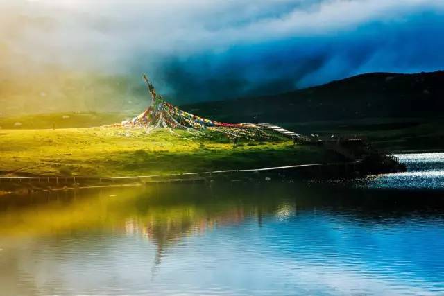 天的深蓝,云的洁白,水的翠绿,山的巍峨,飞舞的经幡,一同构成年保玉则这不可多得的实景油画。
