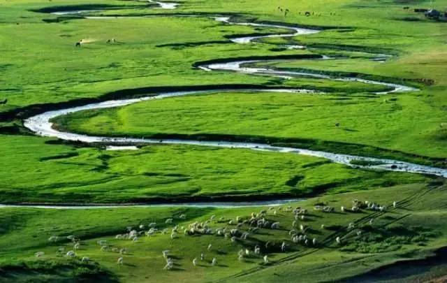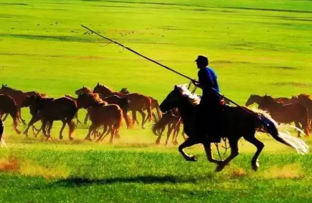 绿草与蓝天相接处,牛羊相互追逐,牧人举鞭歌唱,处处都是风吹草低见牛羊的景致。