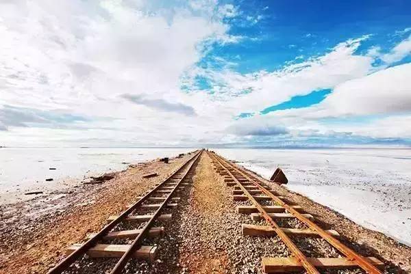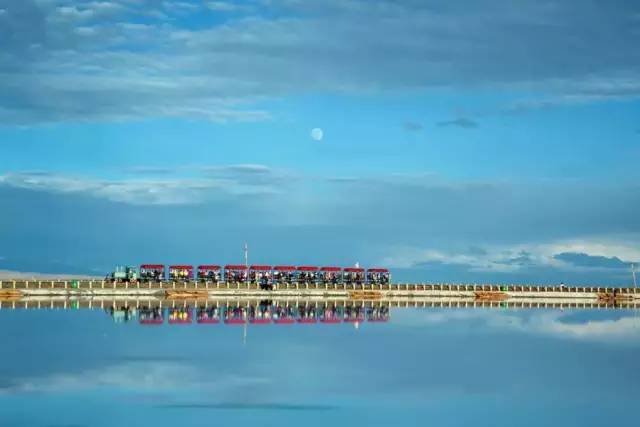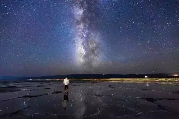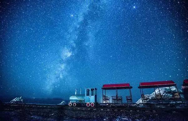 在盐湖边上有着一辆火车,在繁星照耀下,仿佛带你去到童话中的画面,美得那么不真实。