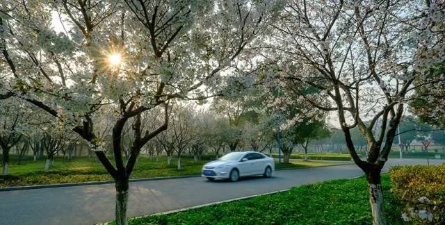 樱花道蜿蜒千米,每到春天,满树樱花如雪,似云,却比云还要纯洁。每当春风乍起,花瓣簌簌飘落,纷飞的花瓣雨洒落一地,铺成幽香花径。