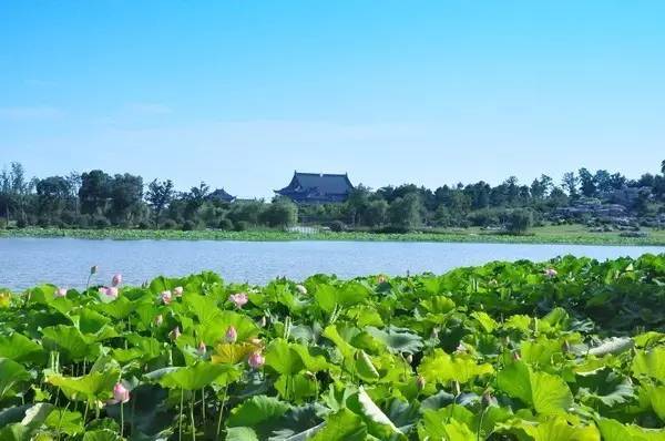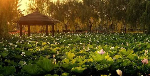 沿着莲池轻轻畅游,荷风送香,登高而望,碧水蓝天,白鹭翩跹,古木葱郁,桃花嫣然,让人犹疑武陵犹在,桃源还又来。