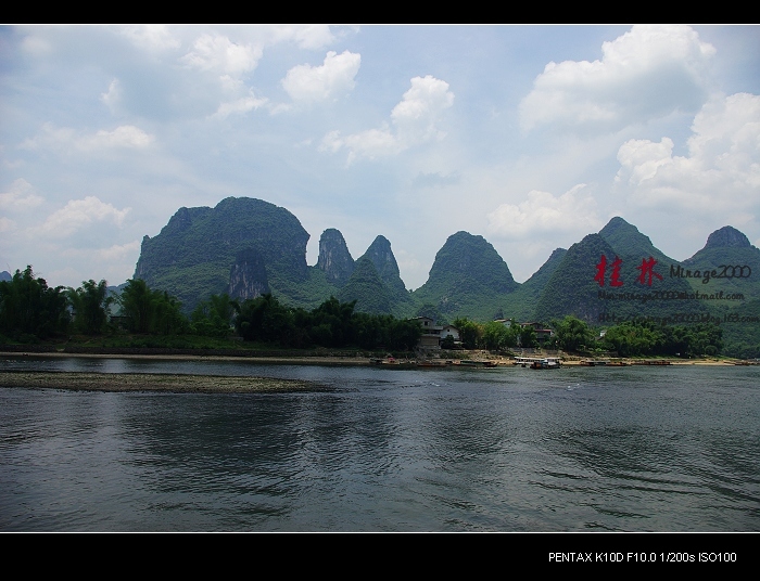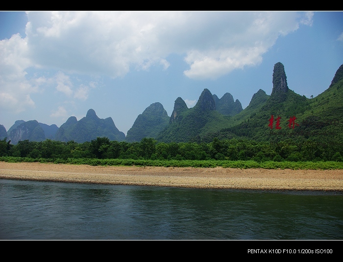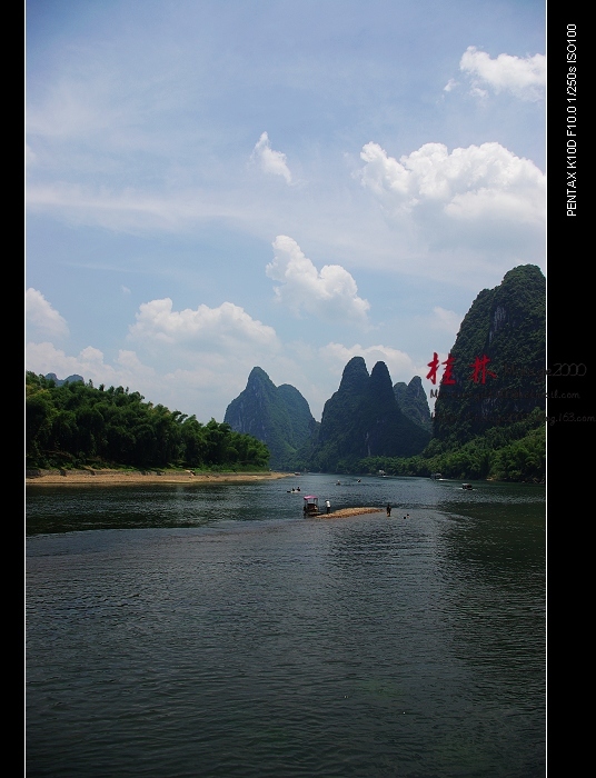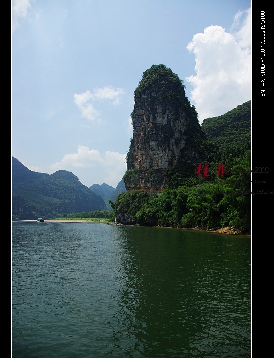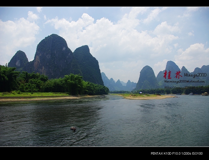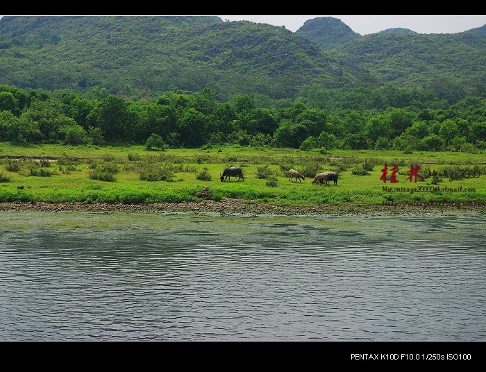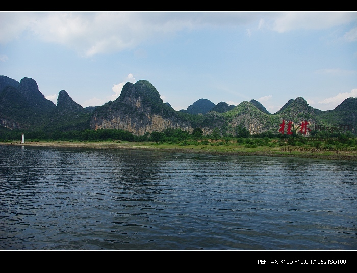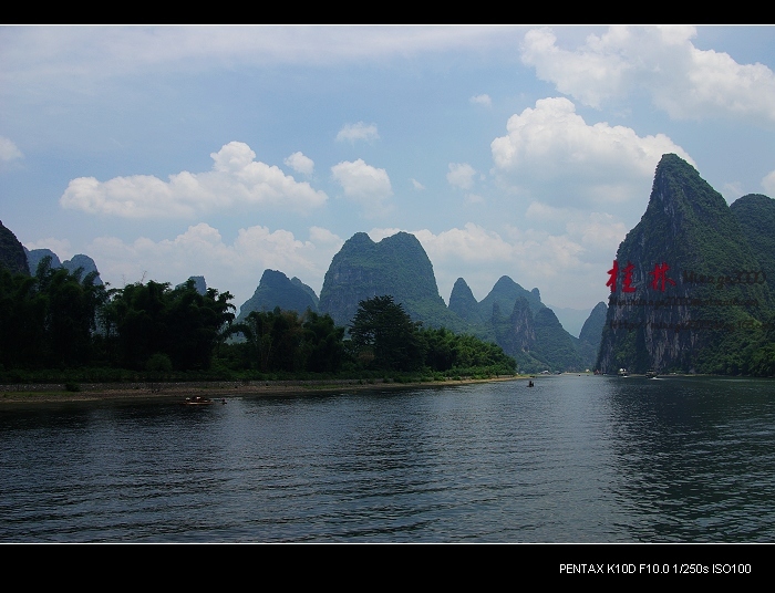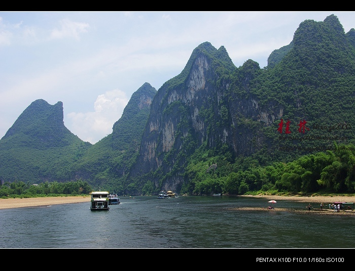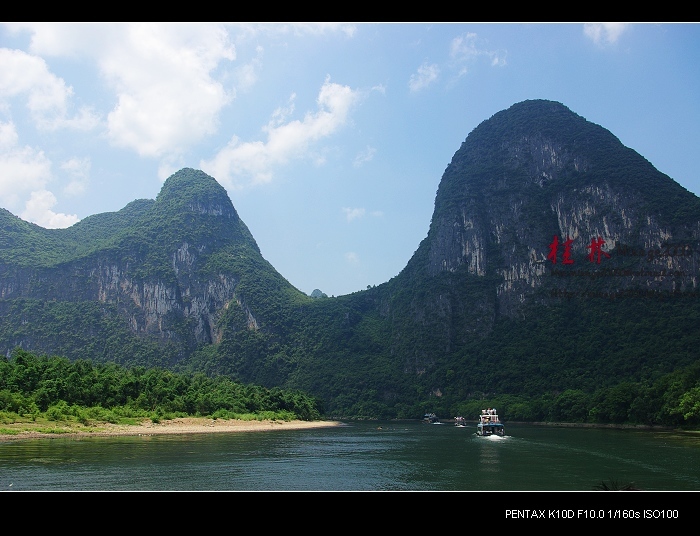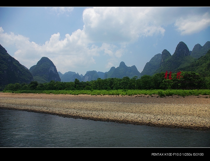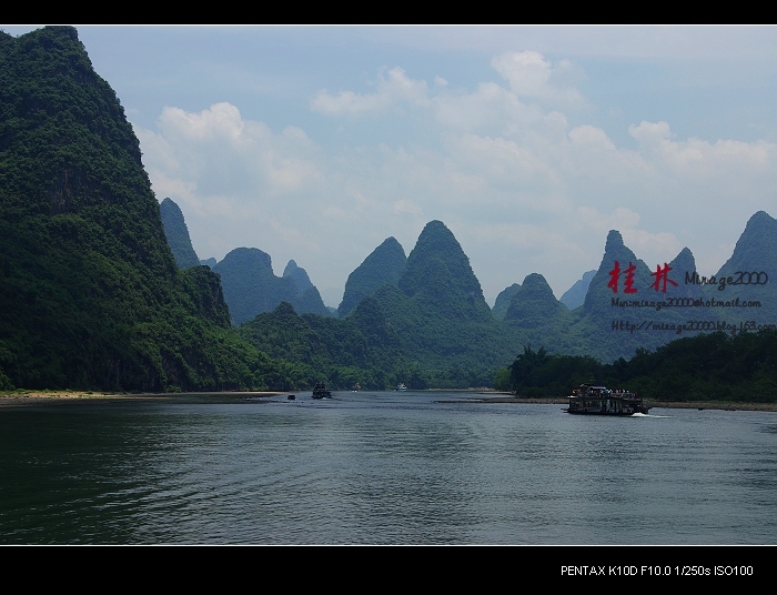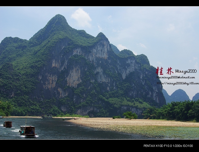 从桂林做船游漓江,到阳朔,一路美景,所见为典型的喀斯特熔岩地貌。其中就有20元人民币背面的风景。