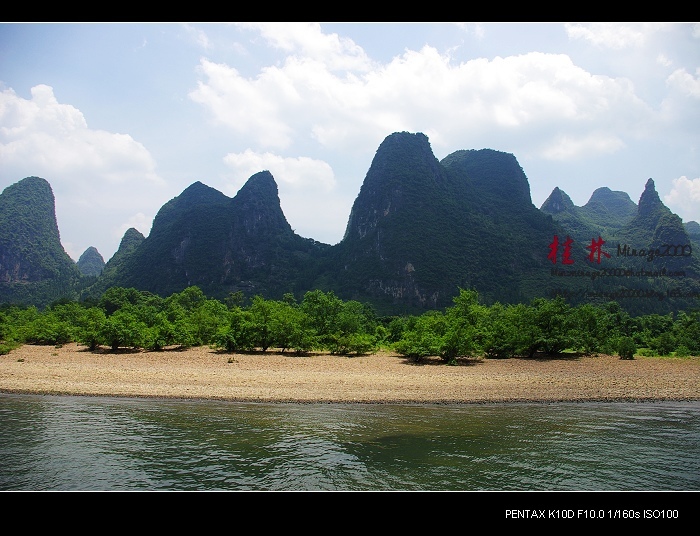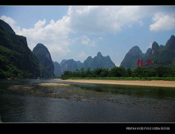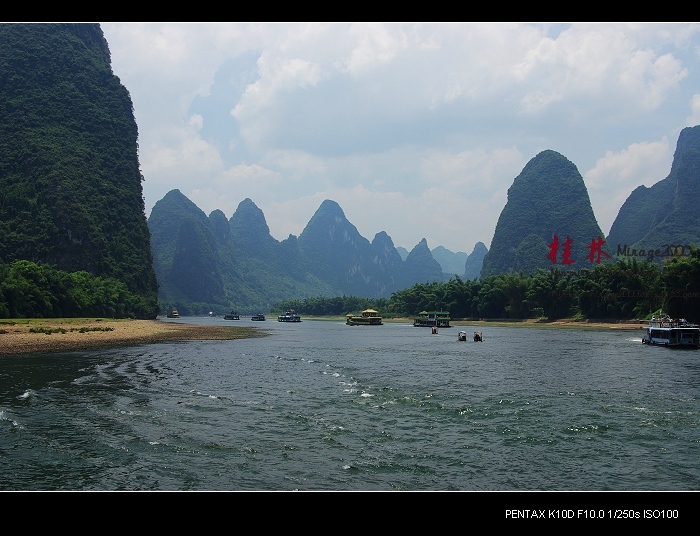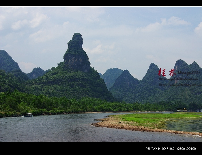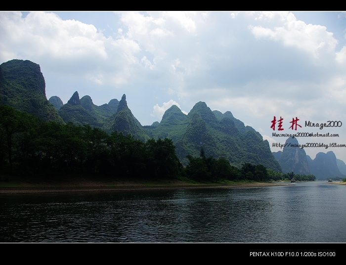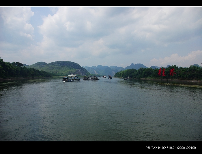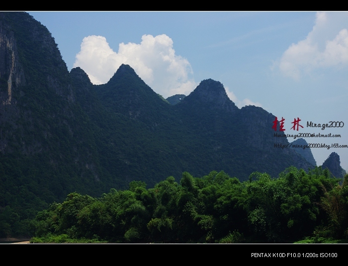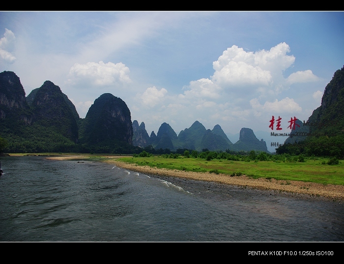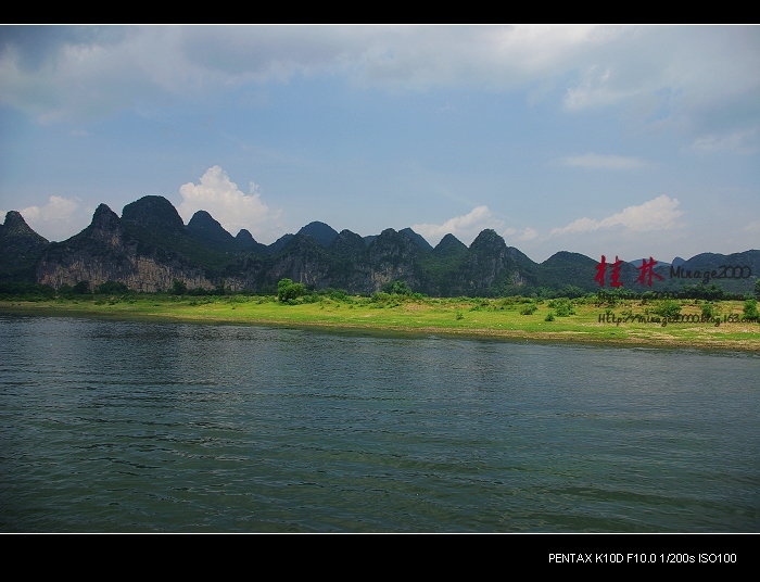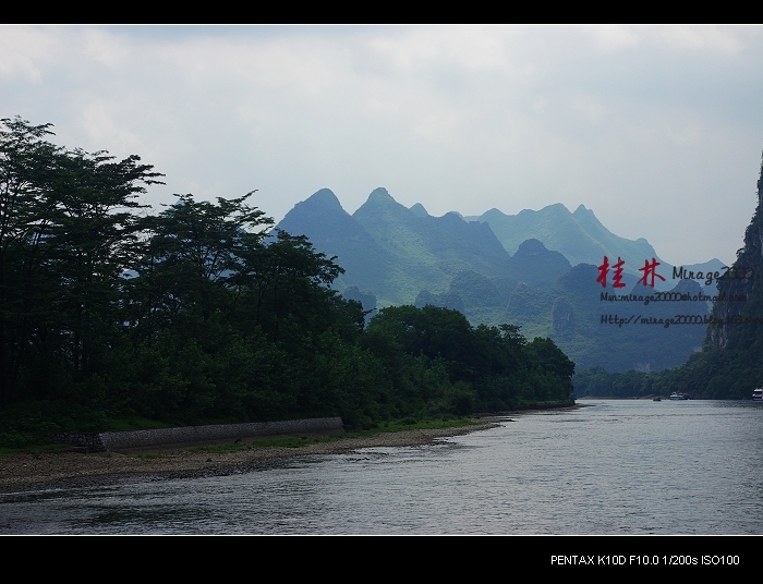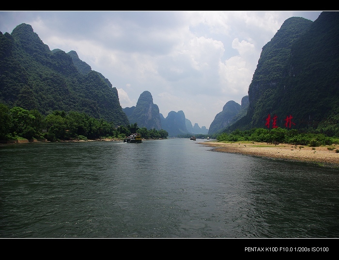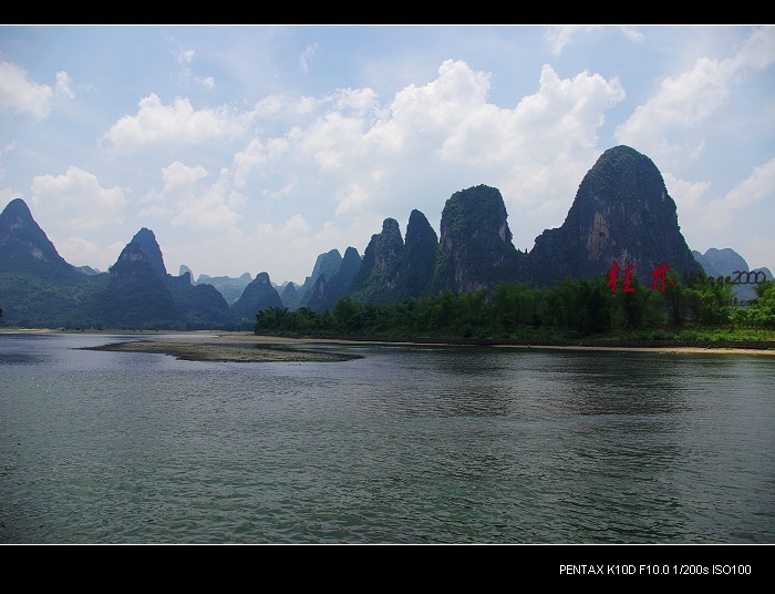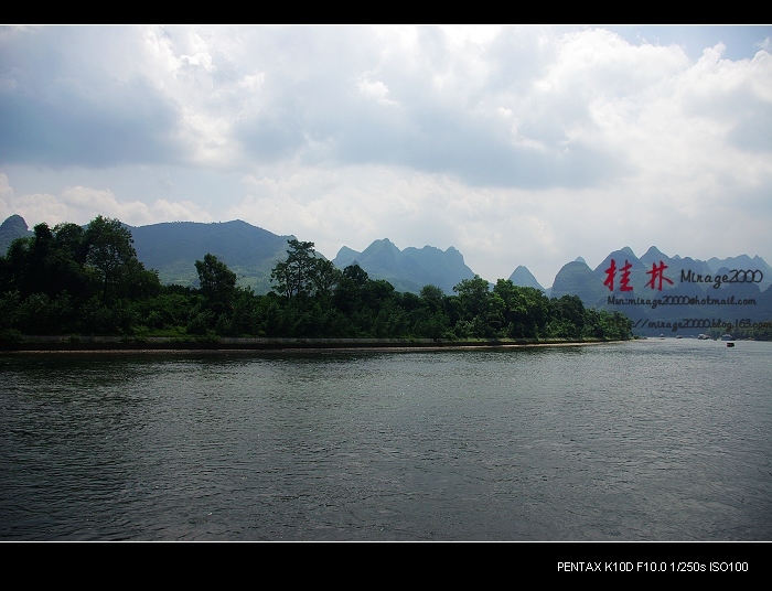 从桂林做船游漓江,到阳朔,一路美景,所见为典型的喀斯特熔岩地貌。其中就有20元人民币背面的风景。