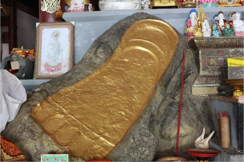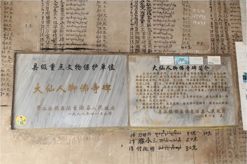 景谷县境内共有26处“佛迹”,全国罕见。其中最著名的是景谷县芒朵佛寺内大石头上的脚印和手印,距今已有近千年的历史,传说是佛祖云游时留下的。两个手掌印深陷于巨石中,两米外的另一块巨石上则有巨大的脚印。傣族群众每年都要来这里敬仰朝拜,祈求风调雨顺,平安富足。
