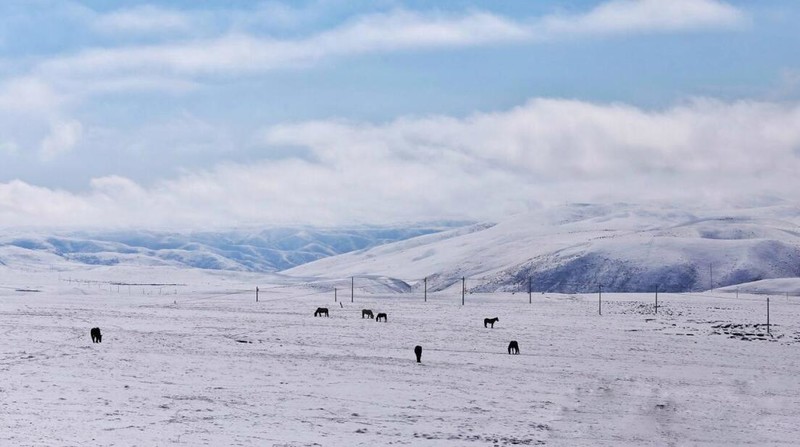 高山之下,飞来了阿依拉山的一片雪花,盖住了阿曲河的整个初春。