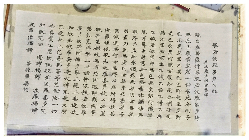 晚餐后朋友领我们到了步行20分钟外的伏虎寺附近的涵山精舍抄写心经,这里的老板是他的朋友,他说难得请求朋友让我们得到如此棒的体验,的确如此,这是我第一次抄写经书,一个小时,让自己静下来,安安静静的抄写心经,感谢李老师给了我们如此棒的一次体验。因果轮回,好的福报在你平日里已种下。