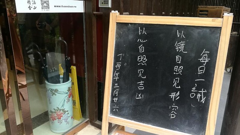 而涵山精舍是一家以国学文化为主题的酒店,倡导来宾到此过一段自然简单的隐逸生活。去伏虎寺、森林步道走走,再回到精舍后去茶馆汲泉煮茶,或在书房读书舞墨,或去禅堂读经打坐。依时辰作息,食山珍养生,依枕听泉入睡,晨闻鸟鸣起床,与不期而遇的有缘师兄修习论道, “恍兮惚兮疑仙境,悠哉游哉醉桃源”!依然不知人间是几时啊!
