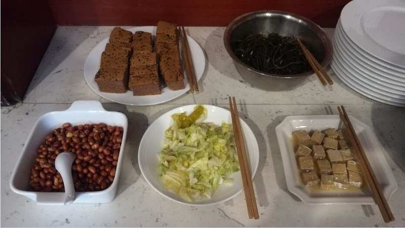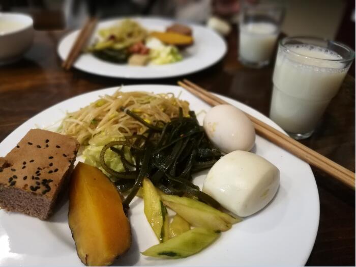和小伙伴们在布金林门前练习了八段锦之后,我们就到了涵山精舍旁的一箪食素食餐厅吃早餐,现在我们身边的素食餐厅也越来越多啦,我曾经在一期传统文化的学习中吃过一个星期的素食,每一道菜都精致而美味,也很有利于健康。那么如此精致的早餐,我们都吃得饱饱的,然后可以元气满满的去爬山啰。