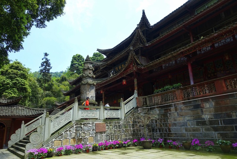 现在,峨眉山佛学院比丘班就设在此地。在这里,游人时常可以听到诵经之声,响彻云霄。每年的三月三,在此地举行的佛事庆典很壮观。但我们当时去的时候旁边摆了很多建材,大概准备翻修一下。