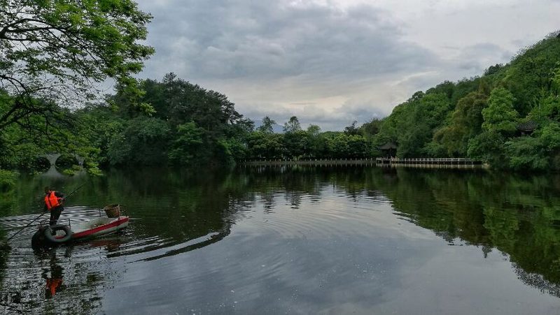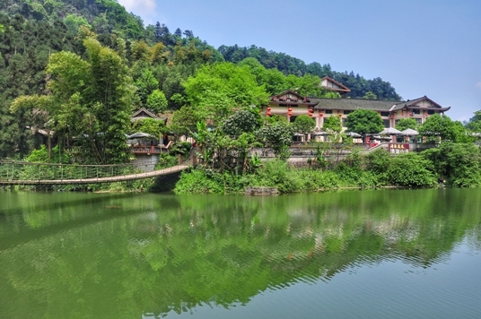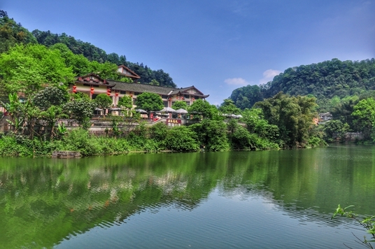这里山水相连,声色俱美,曾是千古爱情悲剧<白蛇传>中,白蛇和青蛇相遇之后斗法的地方,当地人又称斗龙坝。此湖系绿色生态湖,水质纯净,清澈透底。四周青嶂翠峦环抱,古木参天,湖如碧玉嵌入其中,深深浅浅,点点滴滴,不知是树映绿了湖,还是湖染绿了树。