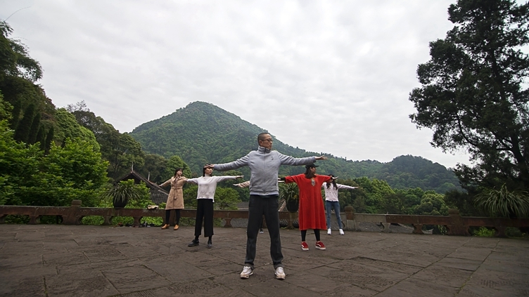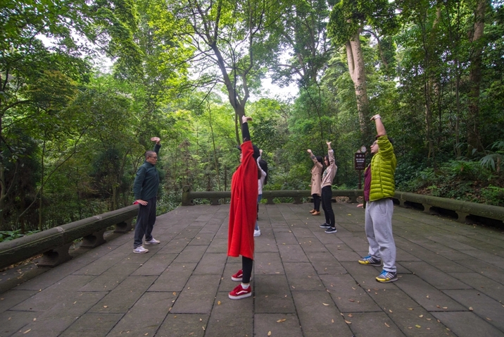 不知道你是否还记得,我们小时候看的西游记里面,孙悟空为了拜师学艺,到了一个叫“灵台方寸山,斜月三星洞”的地方。而这一出的拍摄地就是在峨眉山伏虎寺前的“布金林”。在山门前,涵山精舍的李老师还带我们练习了一段八段锦,动作比较简单但有非常好的健身效果。