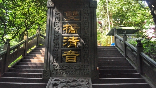 正午时分,我们就走到了纯阳观门前,在宋代,峨眉山道教也有很大的发展。许多道观,如东岳庙、玉皇观、雷神祠、关帝庙等都是此时新建的。许多地名如“龙门洞”、“仙皇台”、“九老洞”、“三霄洞”、“女娲洞”、“伏羲洞”等都是以道家经典而取名。当时著名道人陈搏曾从华山来此修行,并自号“峨眉真人”。后人修陈搏祠,并供其当年写于石上的真迹“福寿”二字。