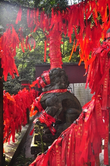 伏虎寺全山唯一的罗汉堂,于1995年峨眉山佛教协会拨款200多万元重建。罗汉堂高大雄伟,恢弘庄严。殿内供奉的500阿罗汉均按照佛教传统塑造,造像生动,流金异彩,佛教氛围十分浓郁。我数到了自己的那一尊,然后站在他的门前。