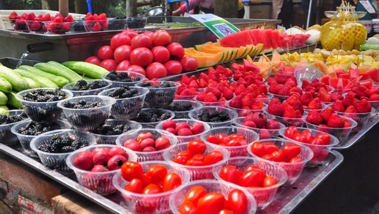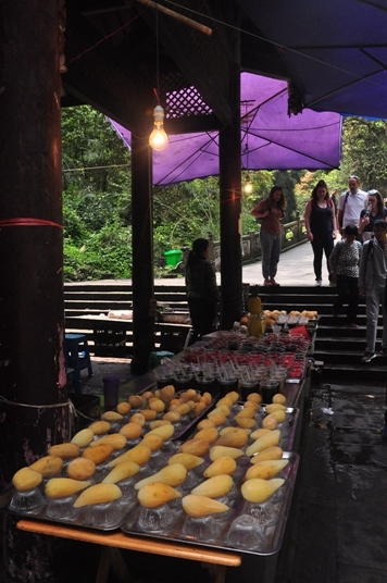 水果是10块钱三盒,峨眉山景区的物价还是很合理的,雪莲果也是10块钱三个,我们走到这里已经饿啦,一人买了一个吃,真的非常非常的好吃。