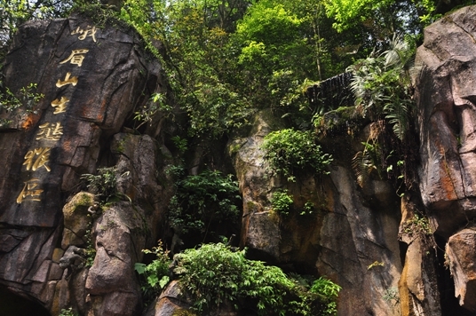 大峨石:峨眉五大名石(有说四大奇石)之一,位于圣水禅院外神水池,从上至下镌刻有“福寿”、“大峨”、“神水”六字,相传分别出自陈抟、吕纯阳与张景贤之手,以一处题刻,集唐宋明三时代人的三种字体于一石。