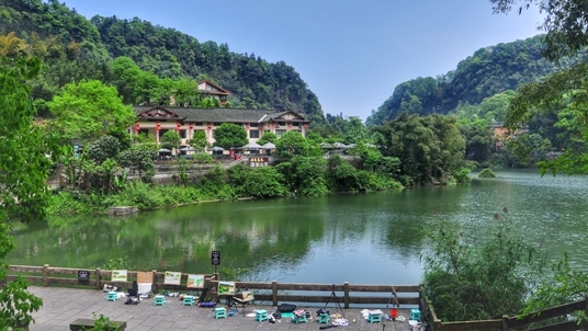宾馆总体布局背山面水,分散对应;单体建筑依山取势,形成独特的建筑向下延伸式构造,足不出户,即可领略馆内无与伦比的自然环境。而红珠山宾馆的森林温泉也是相当的巴适,晚上我们都去泡了一下,红珠山宾馆里面非常的大,环境非常好,温泉的位置离我们住的五号楼还有一定的距离,晚上漫步在林间小道走回来,呼吸着超高的负氧离子,听春天的鸟语虫鸣,也是极好的。