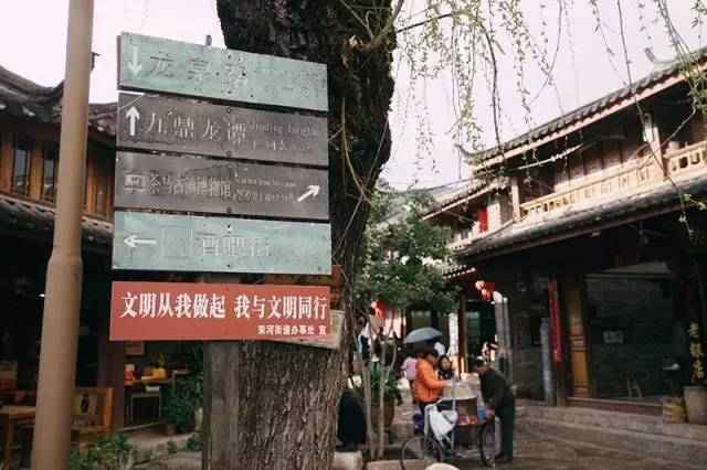 自由地游走在这座静静小小的城中,沿着巷子曲折看尽繁华背后的风雅,看玉龙雪水哗啦啦的穿堂入室,看暖暖阳光下鲜活的市井画面。