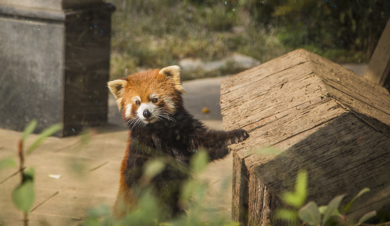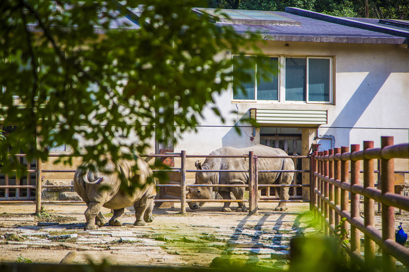 可爱的小浣熊,好奇的四处打量四处张望,萌萌哒的惹来好多游客和小朋友,犀牛馆内的的大犀牛,巨大的身躯,笨笨而沉重的步伐,女儿也高兴的吹起了泡泡。