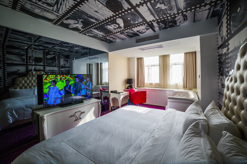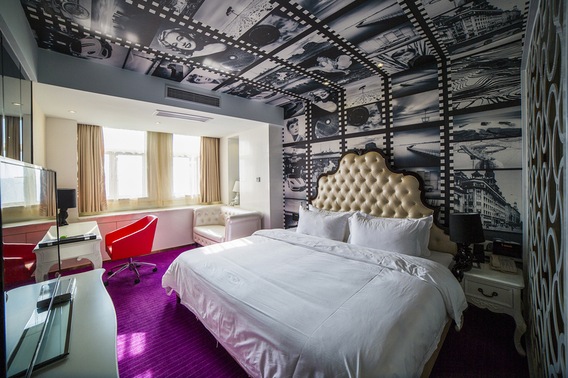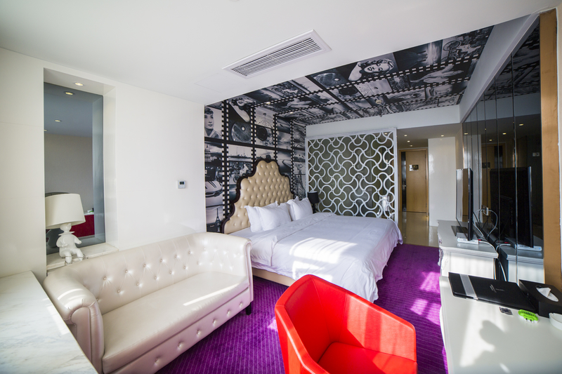 走进房间,客房内大红色的座椅,紫色的地毯,配以白色的沙发,具有年代特色的胶卷,极具突出视觉与艺术的设计,这里的风格,融合了艺术、绘画、音乐、时尚等诸多种时尚元素。一看就是商旅人士、旅游团体以及年轻的时尚一族轻松的好选择。