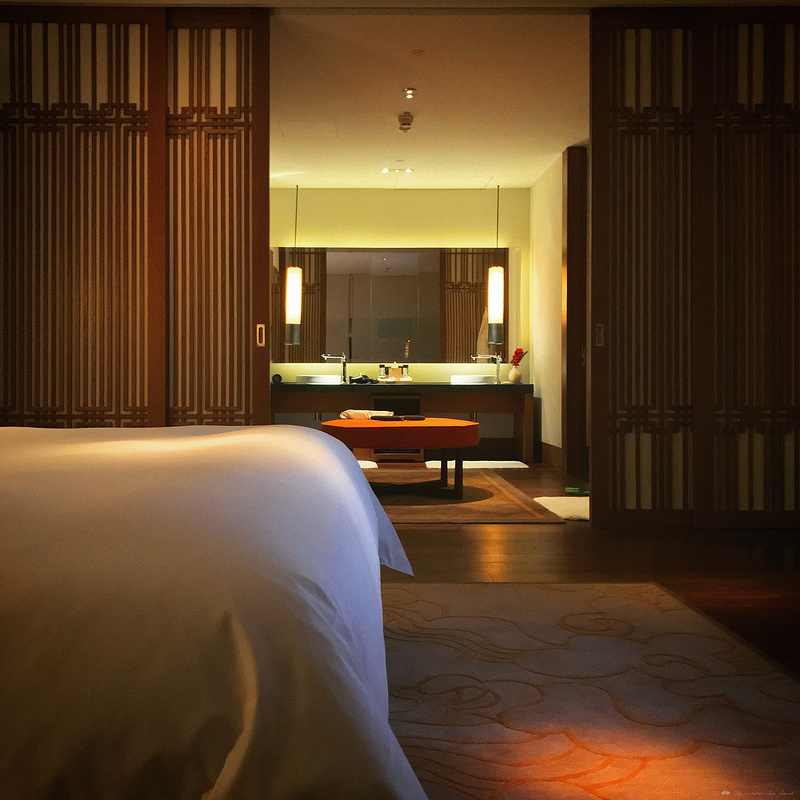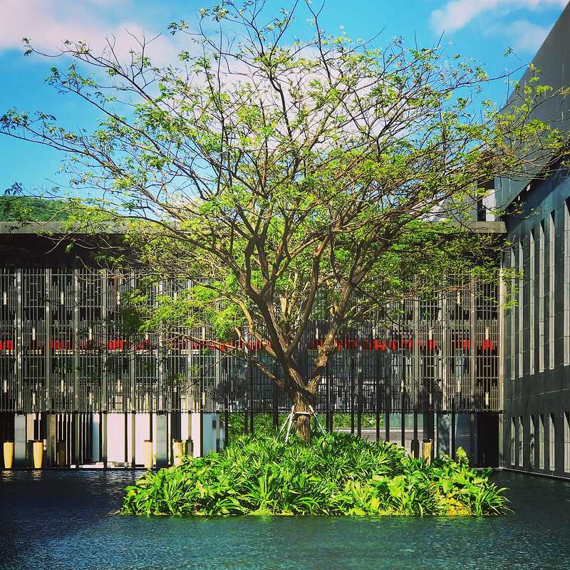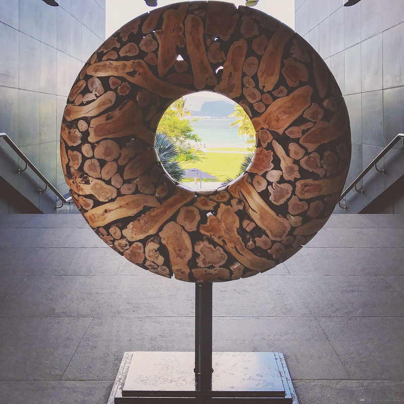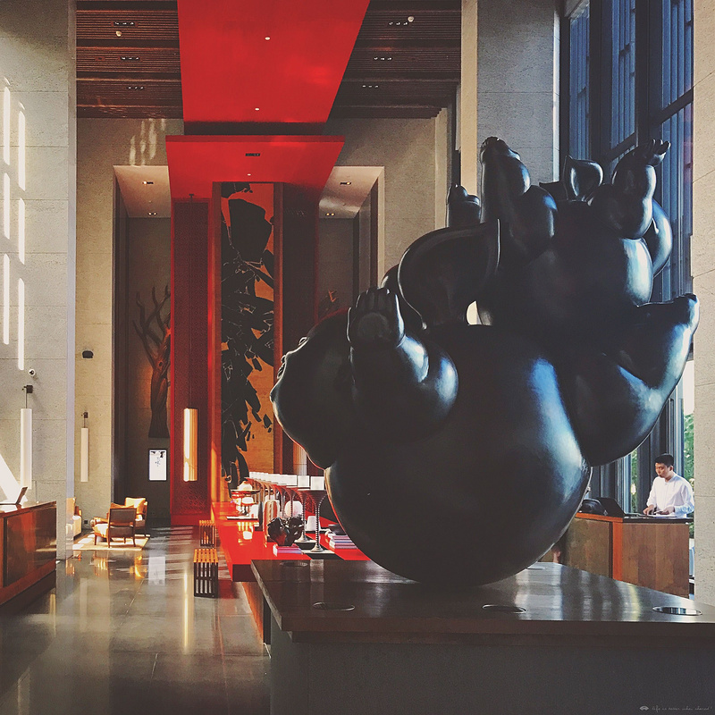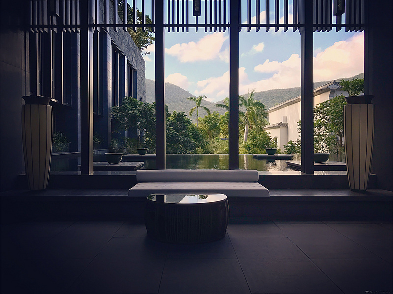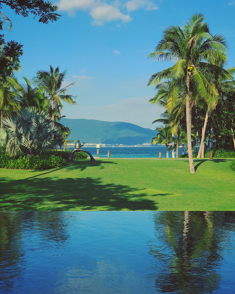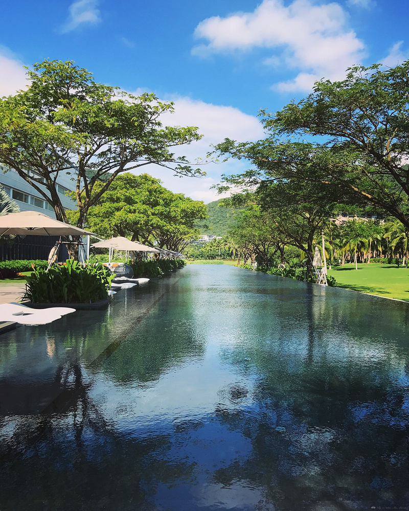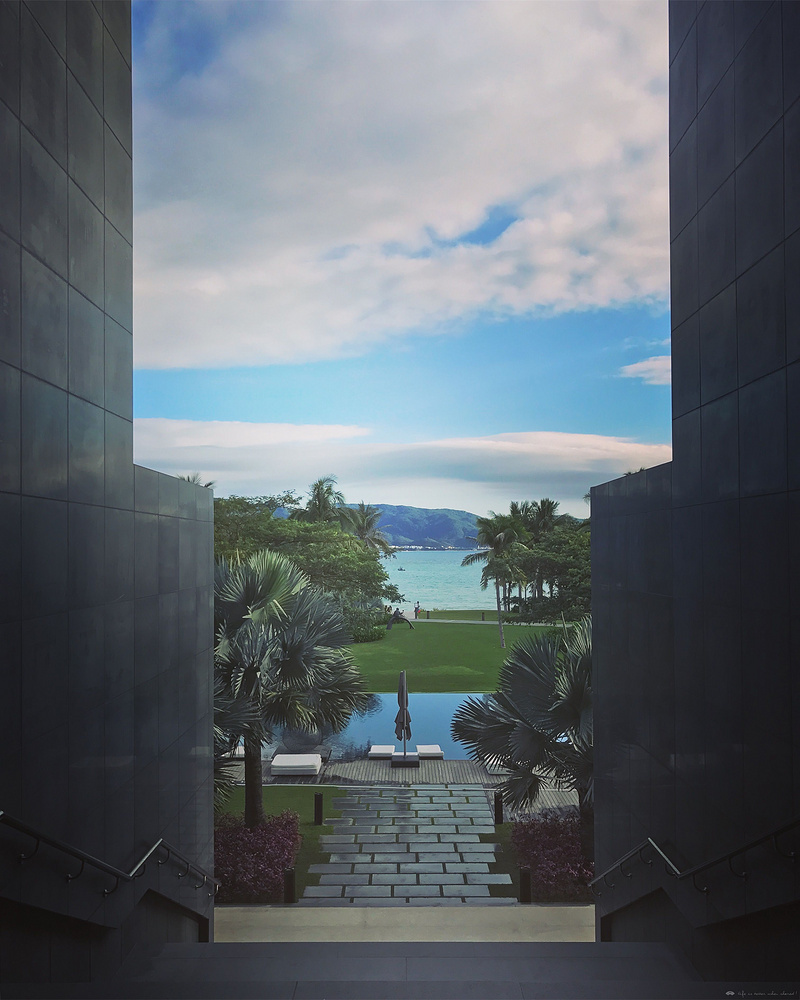 第一次到三亚,也不是很熟,感觉太阳湾好远,直到上了那条蜿蜒的山路才感觉终于快到了。司机左拐又拐的时候,在窗外瞥见被山环绕的Park Hyatt,感觉很漂亮。到前台房间还没有准备好,原路折回拍的这张照片。