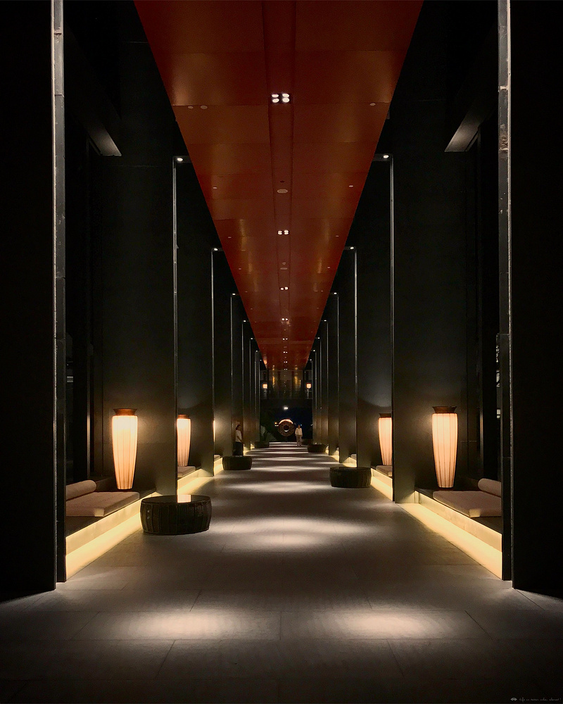 这是另外一条位于2楼的连廊,夜里是这样的。
