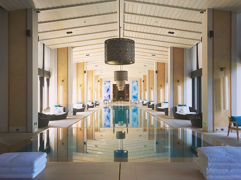 亮点是室内泳池外面这条横卧的100多米的无边泳池。游个来回200多米也是蛮累。