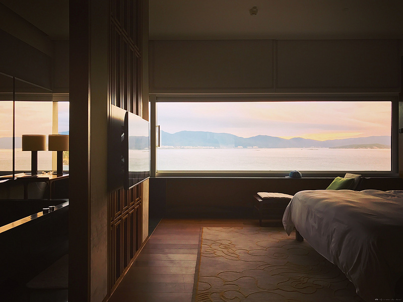 说说三亚柏悦被诟病的地方,一是没有开放式阳台,不是落地窗。但超长的观景窗,尤其套房卧室+客厅的超长海景view还是很赞的。第二就是这个沙滩了,碎石太多了,海水远看还行,蓝得有层次,近看也不太干净,有垃圾什么的。
