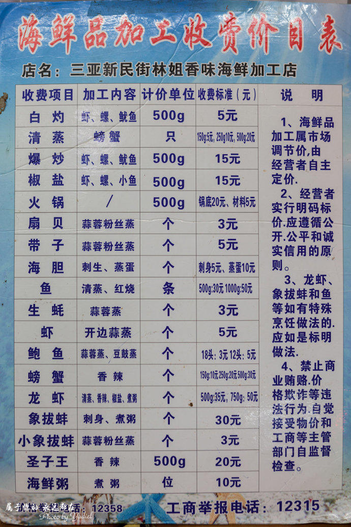 这些色香味俱全的海鲜,都是在这家林姐香味海鲜加工而成。这家看似并不起眼的加工店,在当地已有十多年的海鲜加工经验,赢得了顾客的青睐和极好的口碑,我也是听说三亚当地朋友的介绍慕名而去。