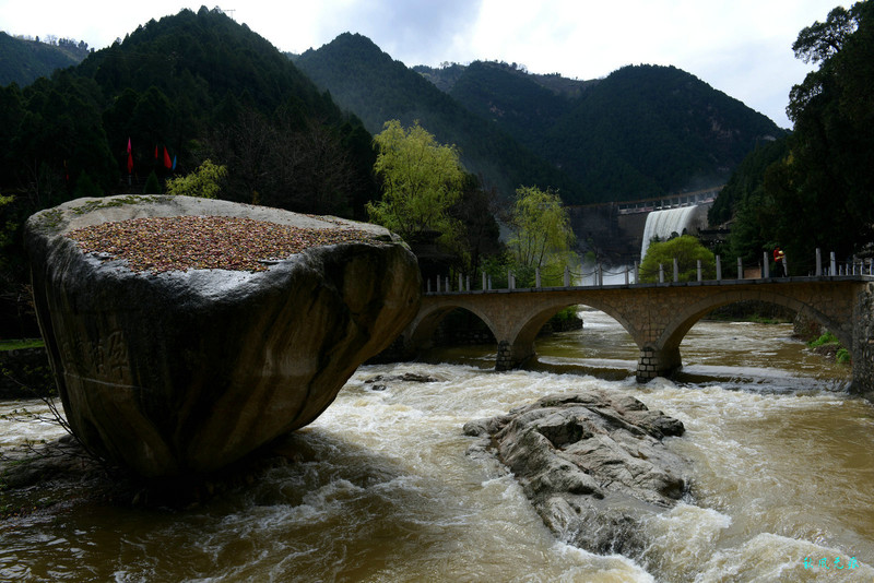 姜太公钓鱼的钓鱼台,有古代石的故事和今天春天的秦川人家