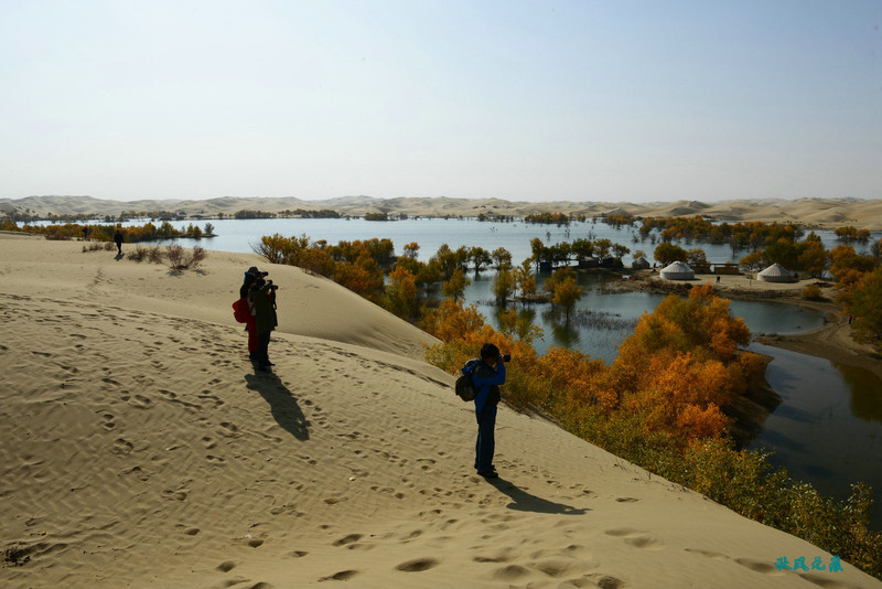 走下最高沙丘,遇到湖北一群摄友,在不同阳光下,再次俯瞰湖泊,又有一番不同景色。