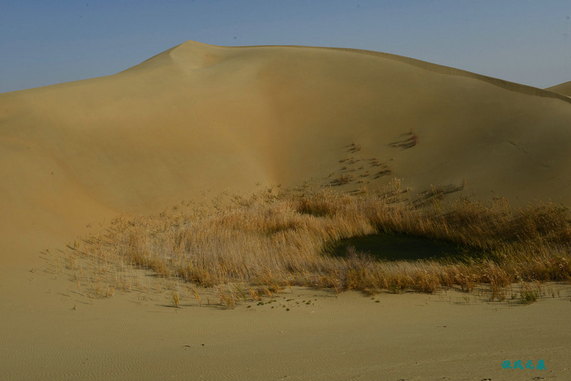 沙丘底部的芦苇与水泊