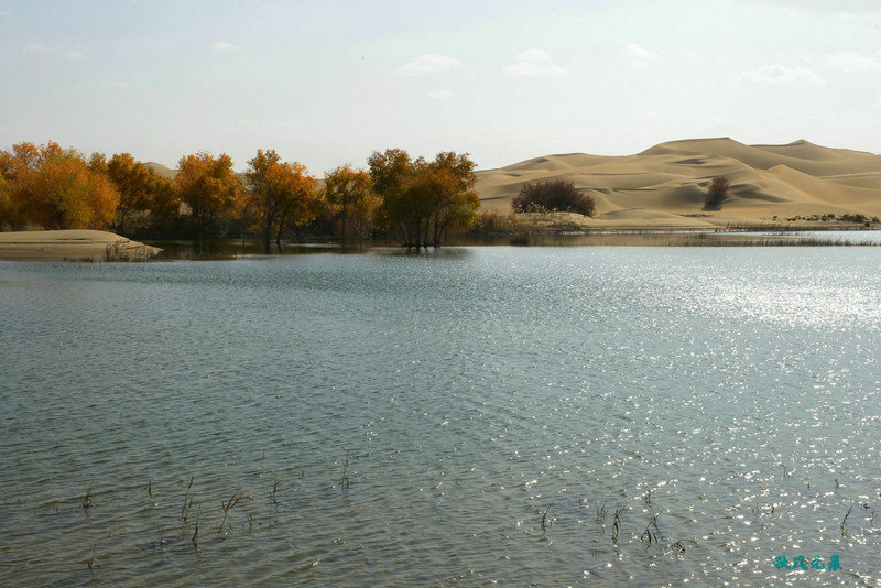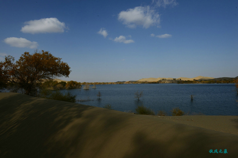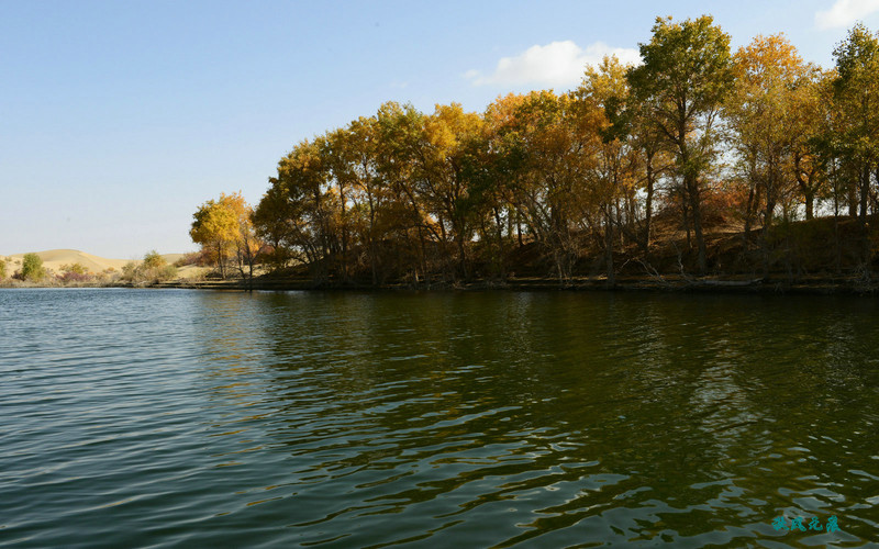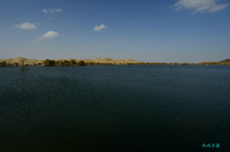 来到葫芦岛边,坐下快艇,身体瞬间坠落美丽之间,湖边黄色沙丘摄影的身影闪动,身边碧波荡漾,胡杨不时从身边掠过,美丽让镜头不时咔嚓,耳边拍摄的声音绵绵不断。