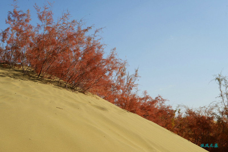 回到岸边,沙丘上一簇簇红柳让我回眸,葫芦岛的小景也惊艳。