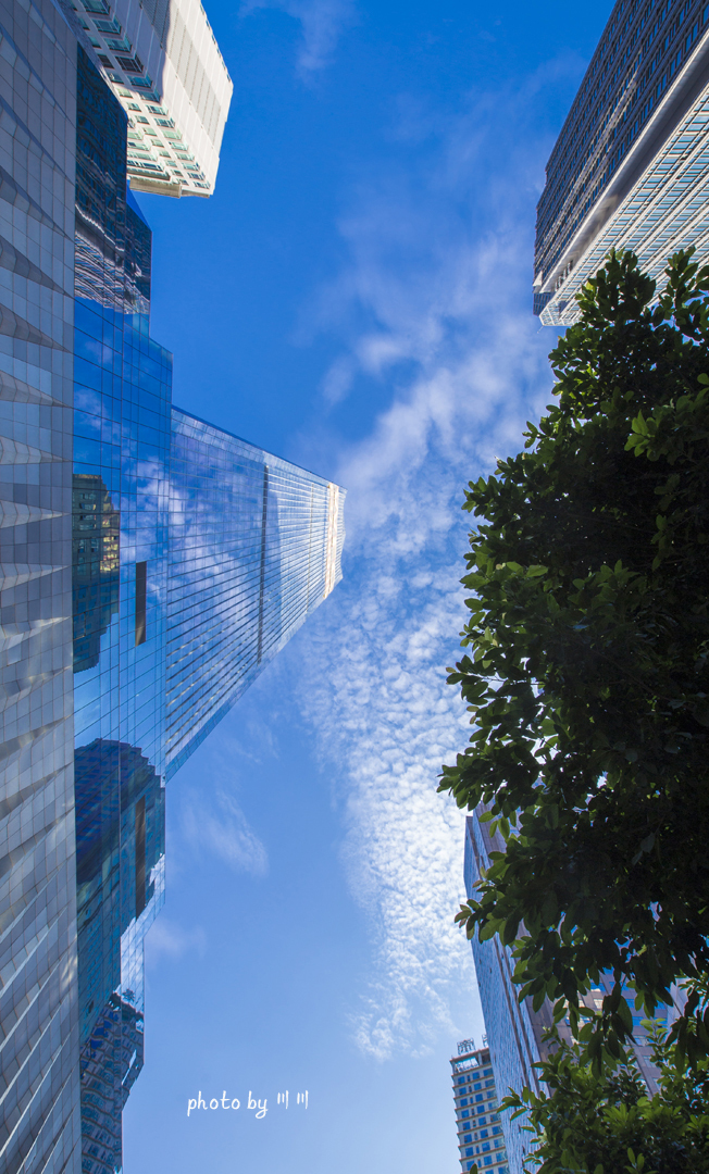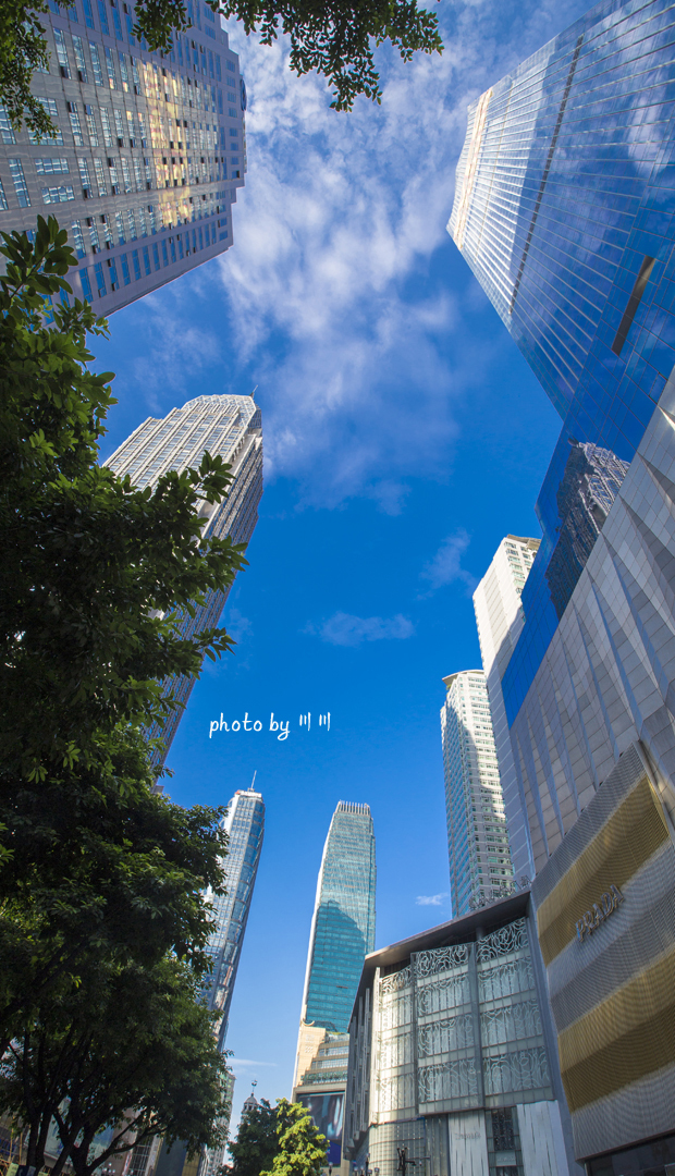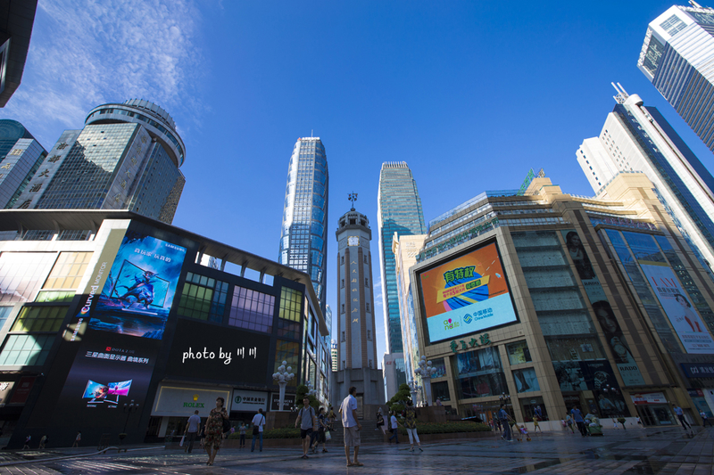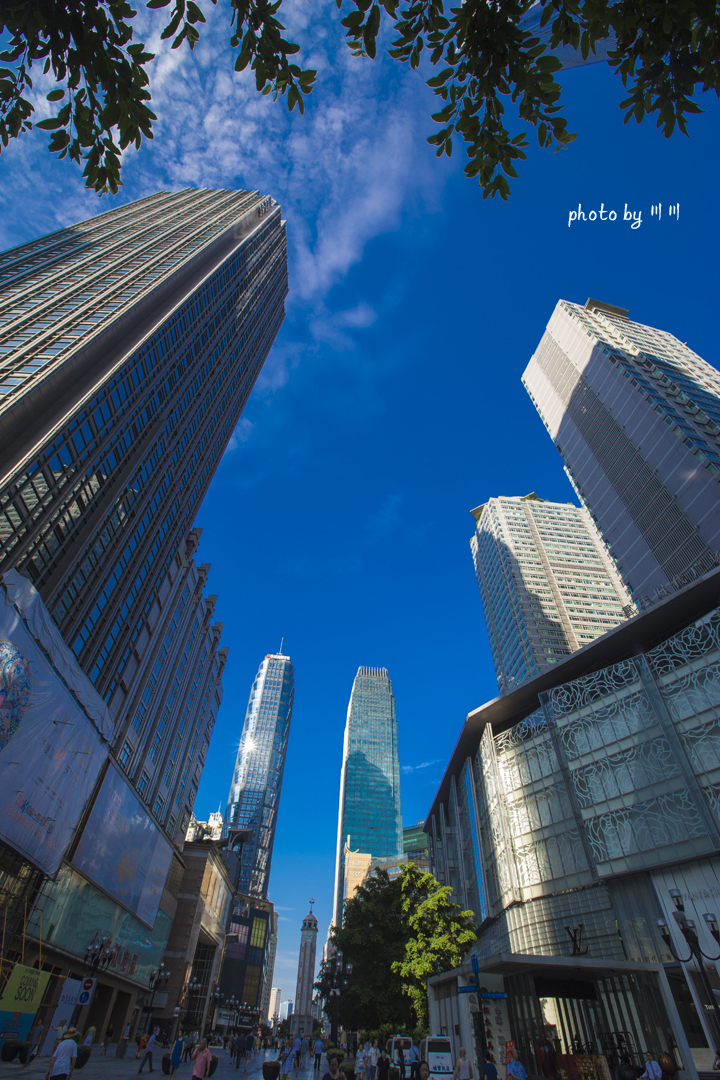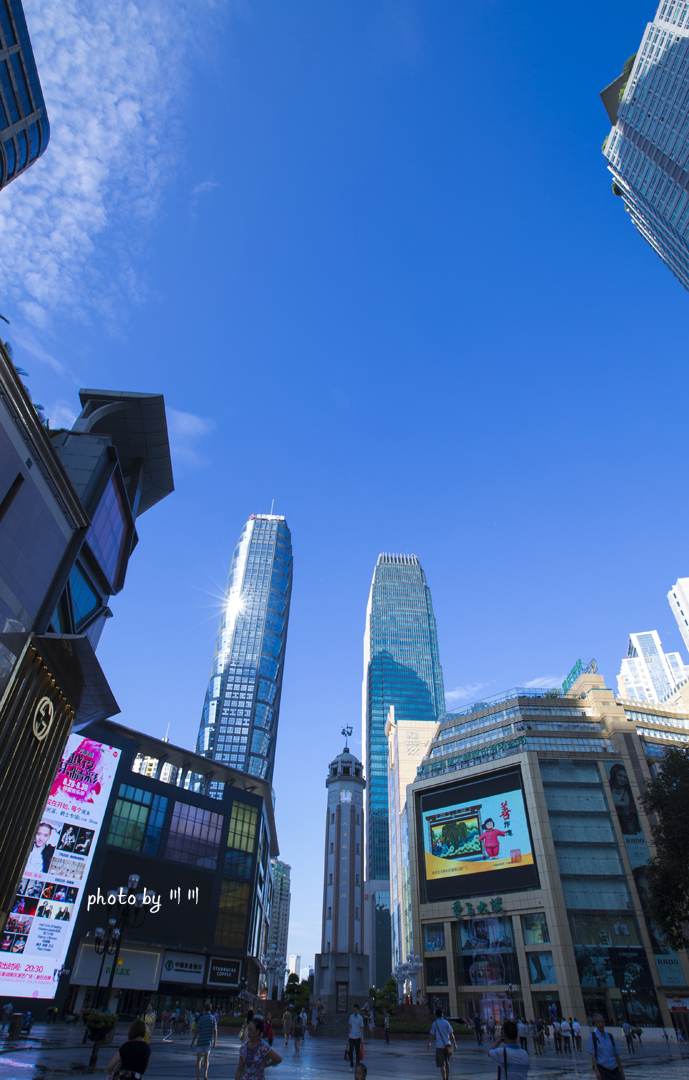蓝天下的解放碑,高楼林立,清澈明亮,碧海蓝天,羞涩闺中,抬头,那一抹蓝,会是你向往的蓝天吗?