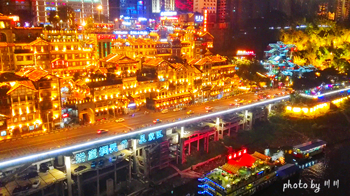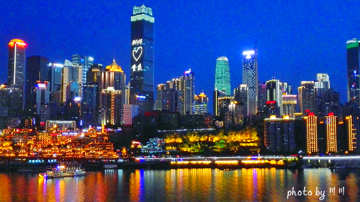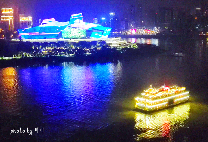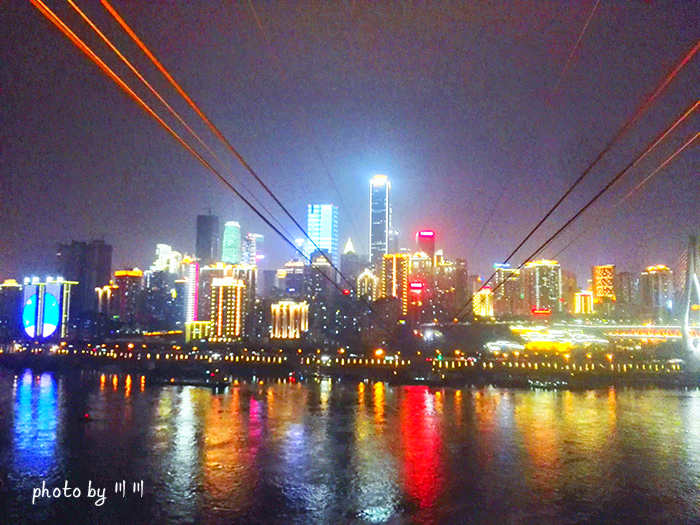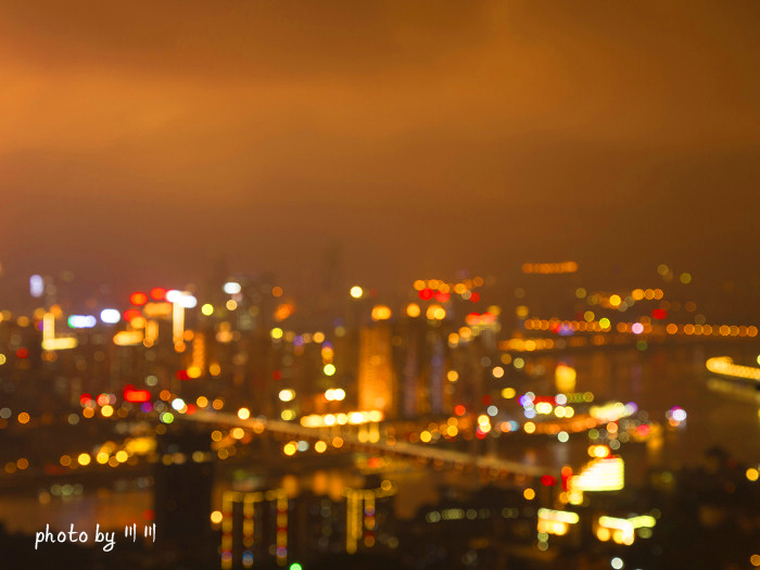 我喜欢坐在洪崖洞边上,拿着相机,看着夜景游船,听她把情歌唱完~