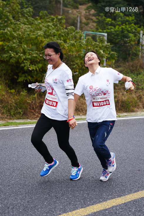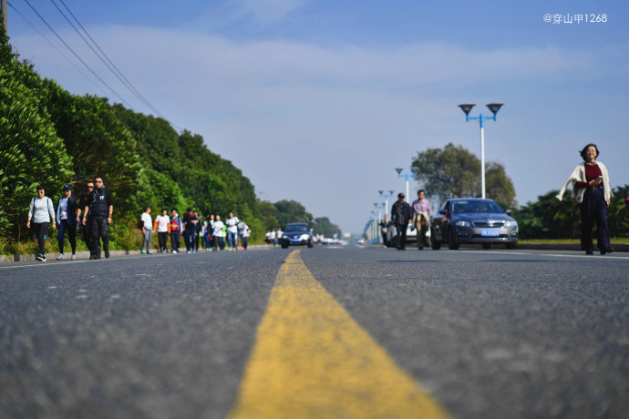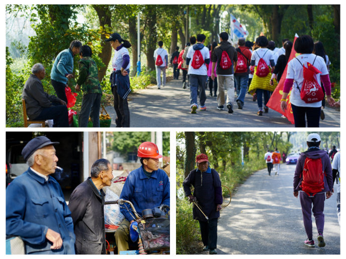 ▲路上除了看见很多小孩子,还见到了不少头发斑白的老人,这是在21公里挑战路段上见到两位老人,看看他们坚毅的脸庞和有力的脚步,让我感叹,老骥伏枥,志在千里。