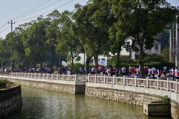 ▲行走的队伍穿过村庄,作为太湖上的一个半岛,马山依山傍水,旅游资源得天独厚,近几年马山的亲水旅游、民俗旅游、马山美食、民宿旅游、农业采摘、自行车骑行和越野徒步等相继开展,还有一些地方名气越来越大,比如:龙头渚、慕湾果园、和平村、拈花湾等已经成为人们节假日重要的旅游出行地。