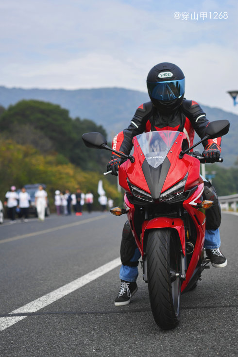 ▲路上偶遇的一位摩托车手,因为马山风景优美,临湖公路非常漂亮,周末都会有很多自行车和摩托车爱好者到这里骑行,享受速度与激情的快感。