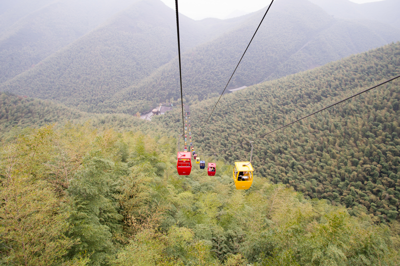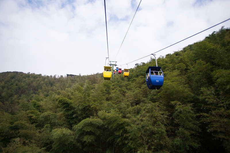 如要观赏到更壮观的竹海景象,乘坐缆车是必不可少的。乘坐在索道上,望向远处或脚下,远处山峦起伏,尽被竹子覆盖,此刻的我也好像在竹叶上飞一般。远处的山巅还有一座座小木房子,住在里面的人家好像神仙一样,尽享世外桃源带来的安静生活。