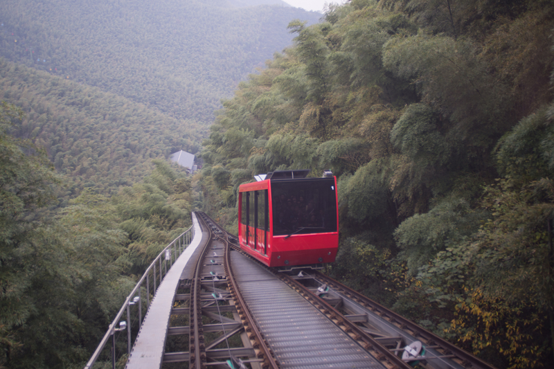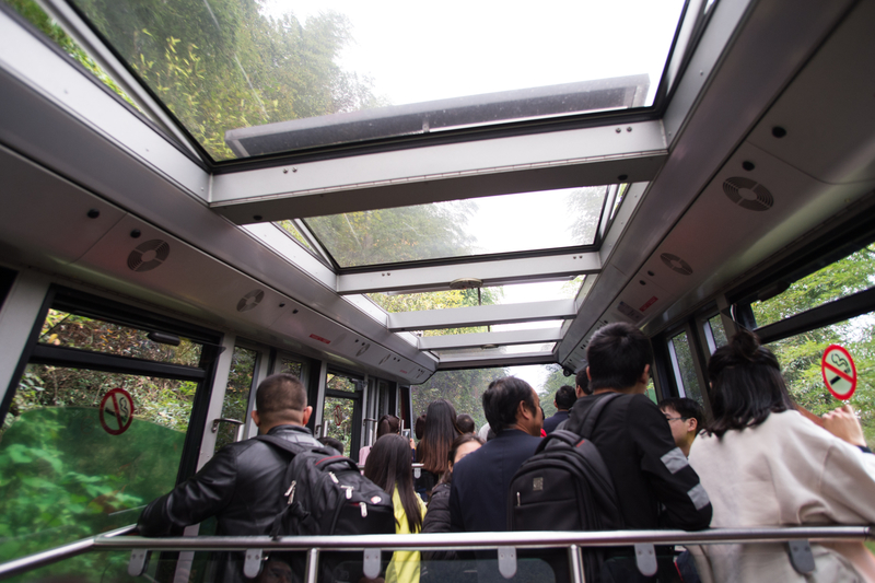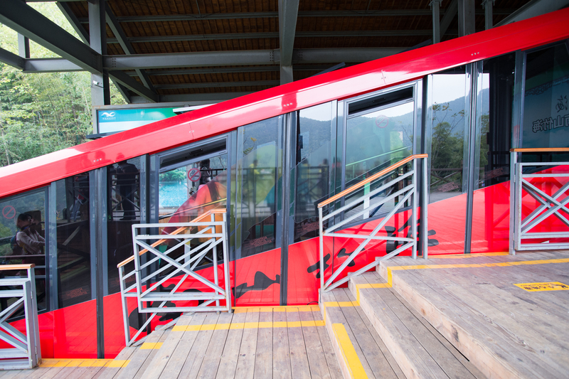 除了空中缆车,在这里还可以体验到地面缆车,其实跟地铁很像,除了正常的轨道外,中间还会有两条牵引线,所以被称作为地面缆车,乘坐在缆车内好似在竹林间游走般。