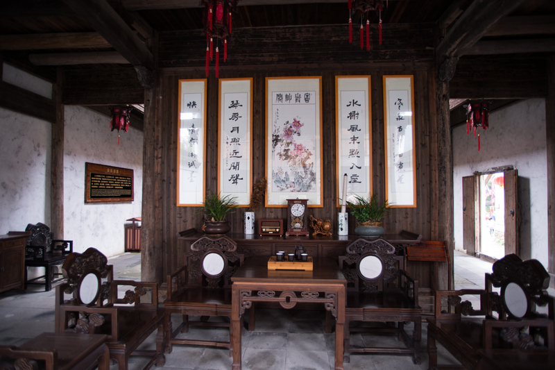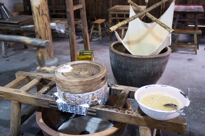 乘坐地面缆车可以直接到达鸡鸣村,鸡鸣村是一座具有江南山居风格的特色古村落,一样的白墙灰瓦的徽派建筑,一样的古色古香、小桥流水,充满了古韵,在村子里会有舞狮表演,还可以看到各种手工艺工坊,比如豆腐坊。