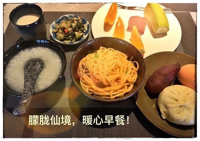 还躺在床上的我,管家就已经发微信给我,说早餐已为我准备好。走进餐厅,管家就将他们精心准备的营养早餐端到了我的面前。面条鸡蛋、白粥水果、牛奶的完美搭配,满满的幸福感油然而生。