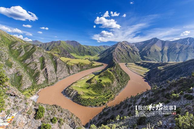 1913年出版的《青海图说》载:“长江、古名丽水,一名神川,一名初午牛,其上流蒙名木鲁乌苏,番名州曲,或译曰直曲、周曲,普通曰通天河。”通天河在夏日寺旁不远处流过,画出了一个漂亮的曲线。其实这里是不是长江第一湾已经不那么重要了,重要的是它的美,足以让每个看到它的人所折服。