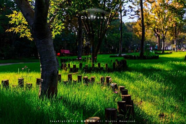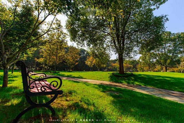 好大一片绿油油的草坪,许多小朋友在上面追逐和嬉戏。大人们也三五成群,围坐在草地上,享受这秋后的暖阳。