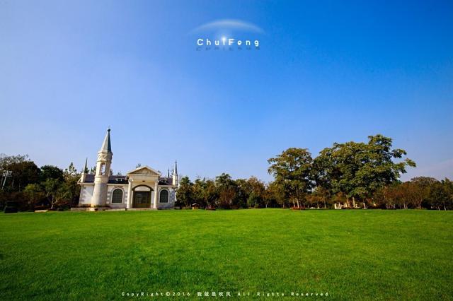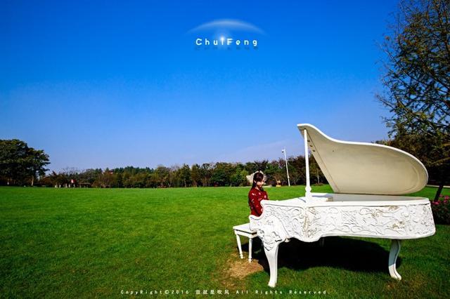 在草地上坐落着童话般的白色城堡和钢琴,想必也是拍摄结婚照的胜地。