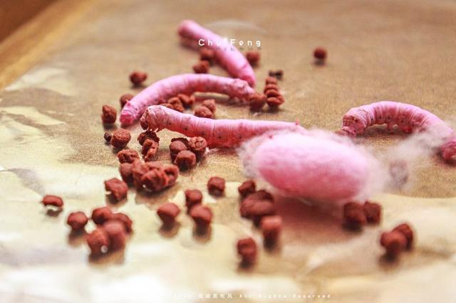 还有粉色的蚕也是萌萌的。连蚕蛹也是粉红色的