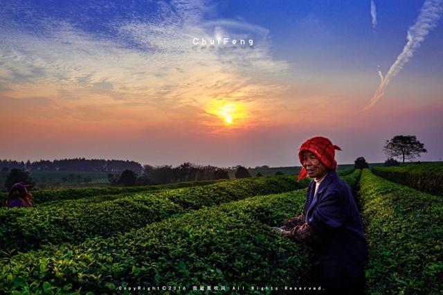太阳逐渐也下去,远处层层叠叠的茶园,分割有序,有着优美的画面感,在秋日的照射下,把秋的风韵在大地上勾画了一幅淋漓尽致的景色,令人心旷神怡,无限遐思,看到远处有一群人正在采茶,兴奋的走近看看,原来不是在采茶,而是在清理茶园的杂草。老人们手脚熟练的清理这茶园,面对镜头还略显不好意思。