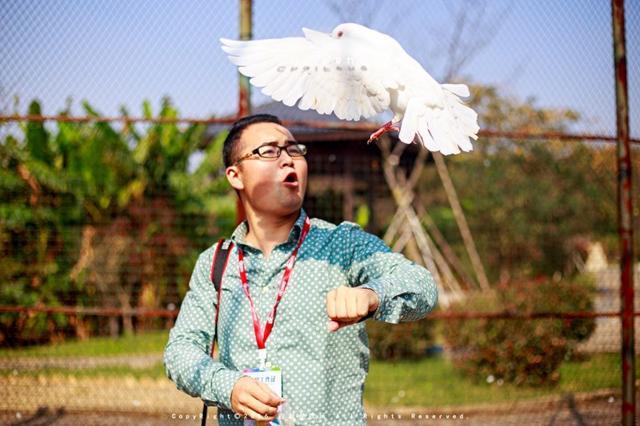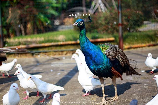 鸽子园,满园的鸽子,看到你手拿吃的,就会飞到你身上来,一点都不怕人。