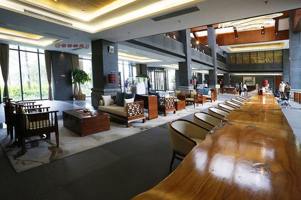高大宽阔的大堂,浓郁的客家风情装饰,古色古香的木质家俬静静的等待客人的到来。